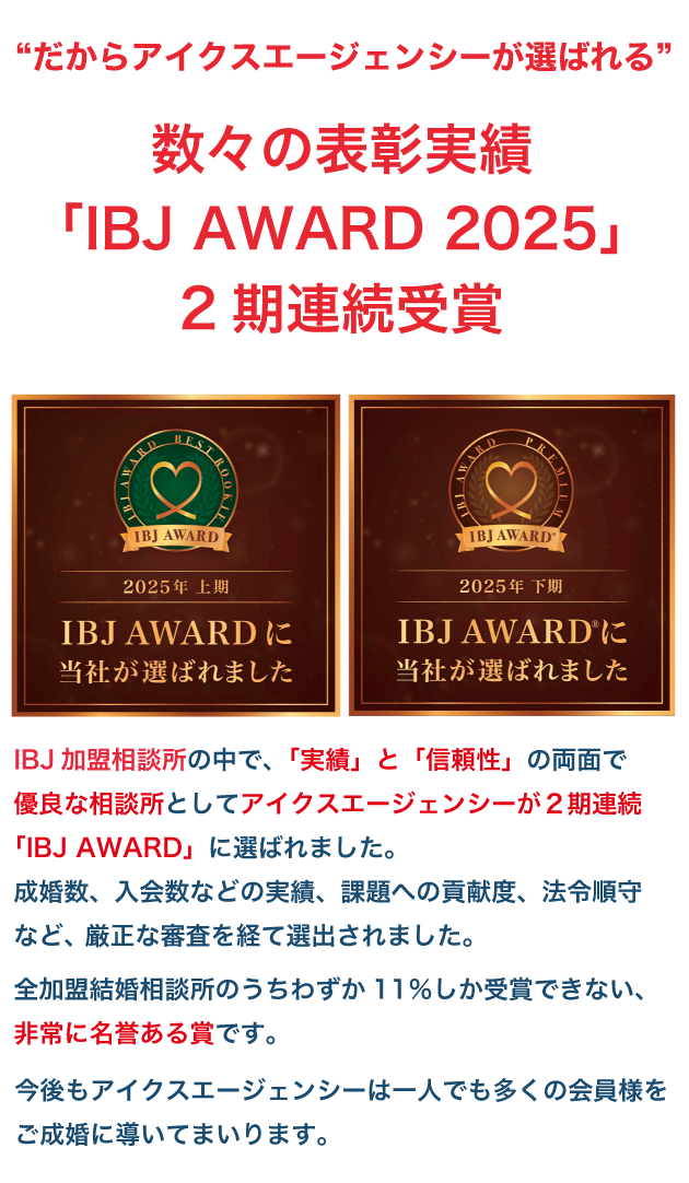 アイクスエージェンシーは”再スタート婚活”に強く、高い成婚実績を誇ります。